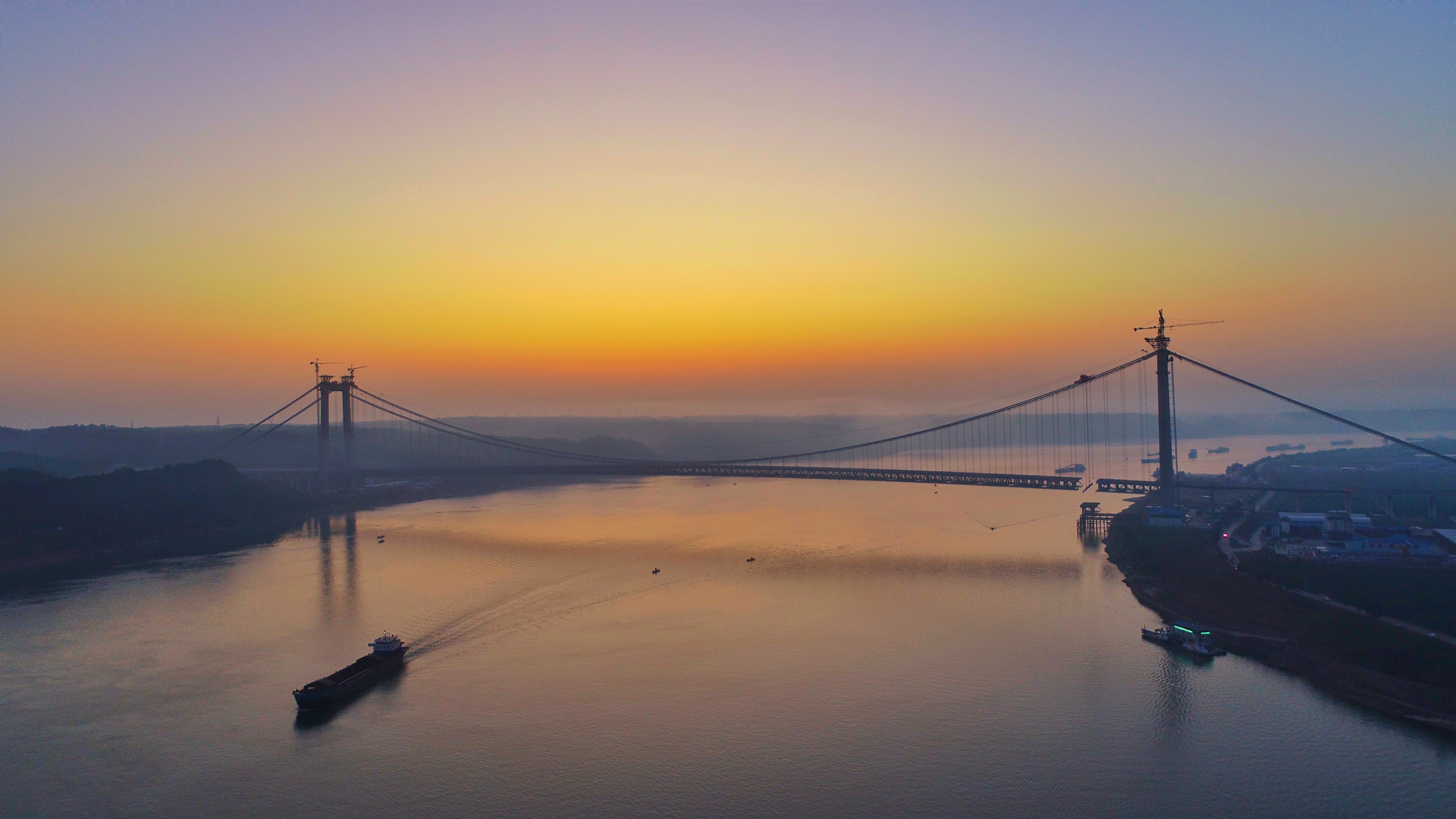 宜都長(zhǎng)江大橋,又稱“宜都長(zhǎng)江公路大橋”,是位于中國(guó)湖北省宜昌市的一座公路雙塔單跨鋼桁梁懸索橋,跨越長(zhǎng)江,連接北岸枝江市白洋鎮(zhèn)和南岸宜都市陸城街道,是呼北高速公路宜昌至張家界段的控制性工程,也是湖北省“753”骨架公路網(wǎng)中規(guī)劃“縱6”的重要組成部分。大橋北接??抵烈瞬咚俟罚线B宜昌至張家界高速公路湖南段。大橋全長(zhǎng)2,670.5米,按雙向六車道高速公路標(biāo)準(zhǔn)建設(shè),設(shè)計(jì)行車速度100公里/小時(shí),宜都長(zhǎng)江大橋?yàn)橹骺?000m的單跨懸索橋,主纜邊跨跨度分別為276m和296.5m。全橋設(shè)兩根主纜,橫向間距為36m,吊索與主纜在一個(gè)豎直平面內(nèi)。大橋項(xiàng)目分兩個(gè)不同的標(biāo)段,項(xiàng)目估算總投資約37.33億元人民幣,計(jì)劃建設(shè)工期為48個(gè)月。湖北路橋集團(tuán)有限公司承建BY-2標(biāo)的建設(shè),2020年4月29月,大橋?qū)崿F(xiàn)全線貫通。