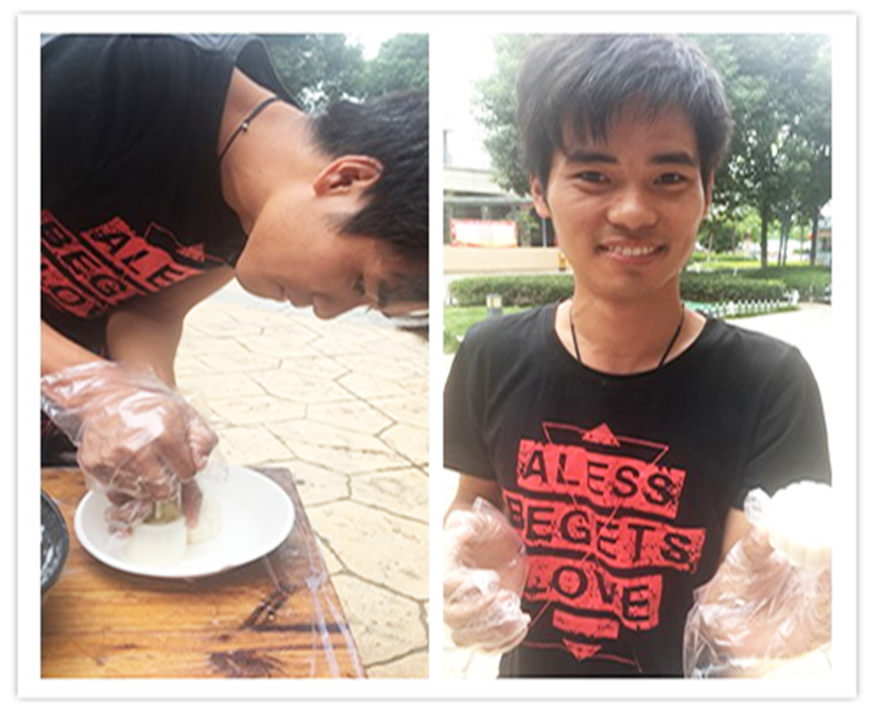 品嘗月餅也是中秋節(jié)的習(xí)俗之一,如果能品嘗自己親手制作的月餅,這個(gè)中秋節(jié)肯定更加難忘?;顒?dòng)第二項(xiàng)就是制作冰皮月餅,大家一邊自己動(dòng)手和冰皮、包餡、壓花定型,一邊相互交流著關(guān)于中秋和月餅的故事??此坪?jiǎn)單的制作過程,要做出漂亮的月餅也讓大家費(fèi)了不少心思。有些止不住饞的小伙伴,還沒等做完就迫不及待的嘗鮮了,也有些舍不得吃的,說要帶回家與家人分享。