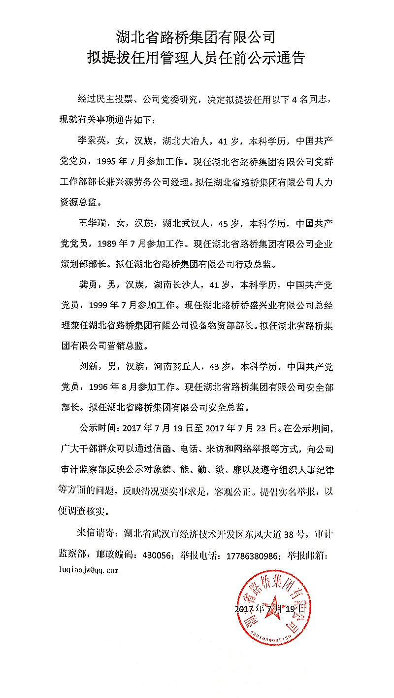 關(guān)于外聘人員勞動(dòng)關(guān)系變更的公示(2017)