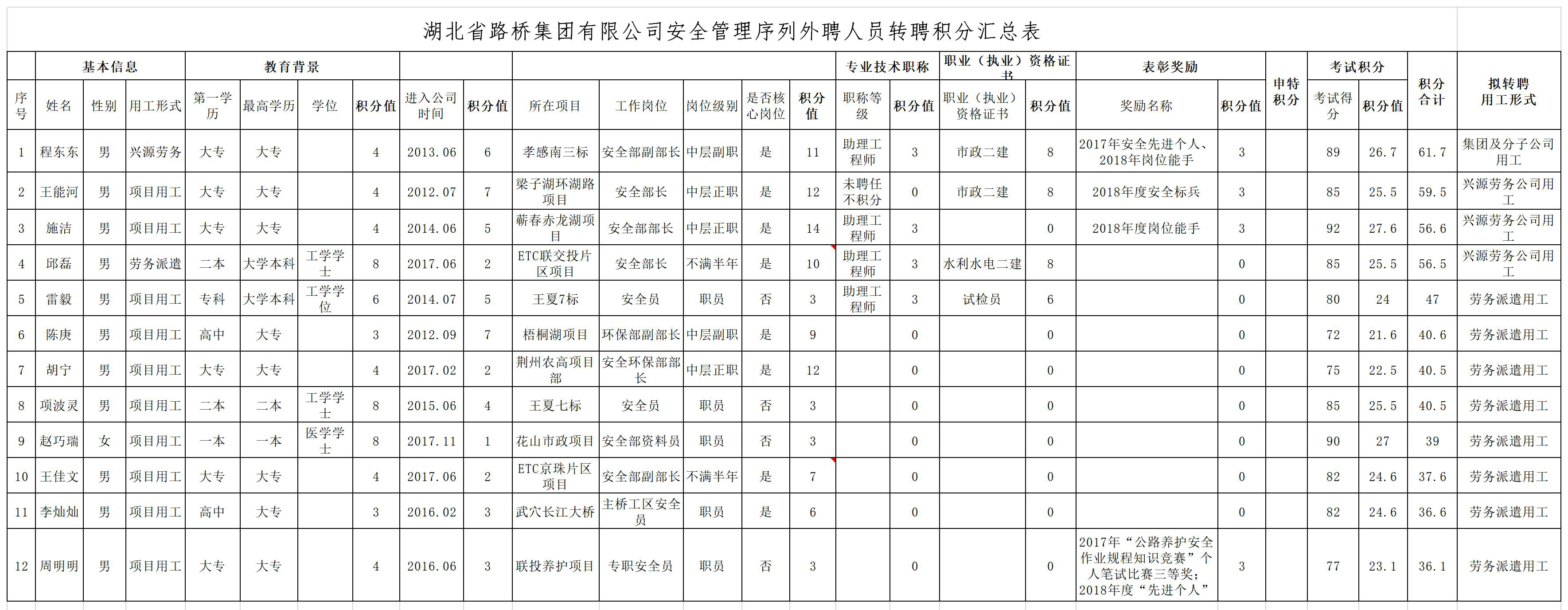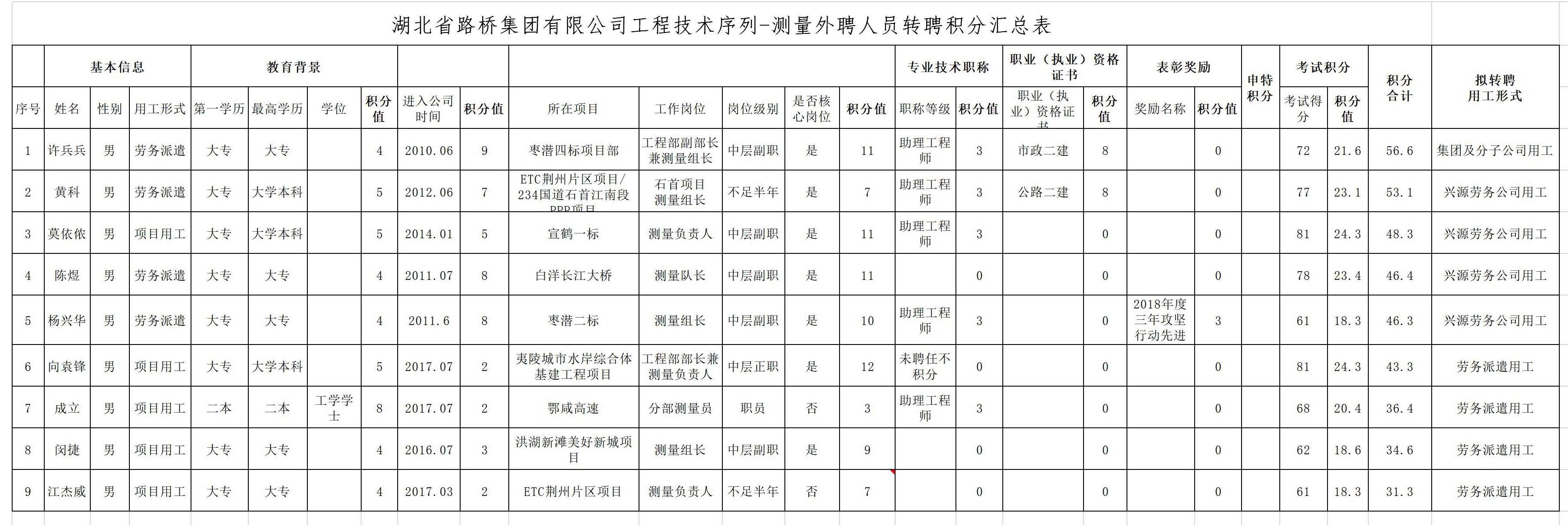 湖北省路橋集團(tuán)有限公司2019年擬轉(zhuǎn)聘人員公示