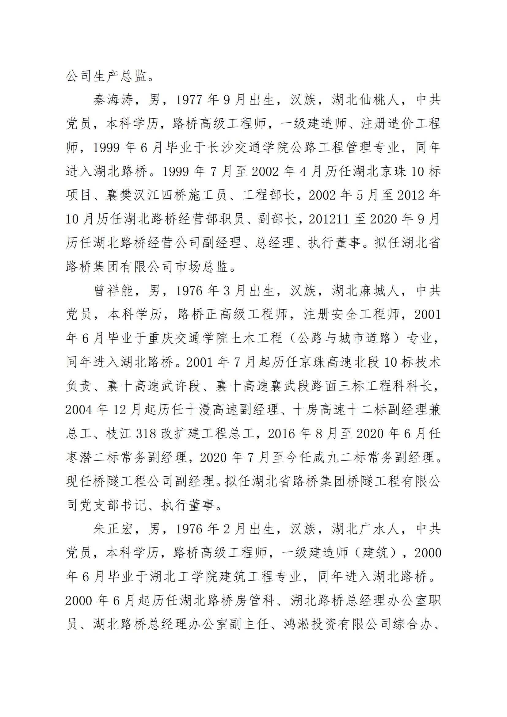湖北省路橋集團(tuán)有限公司擬提拔任用中層管理人員任前公示
