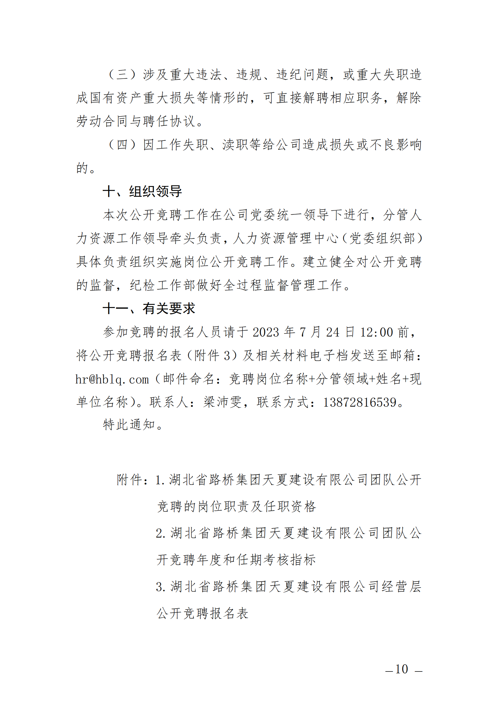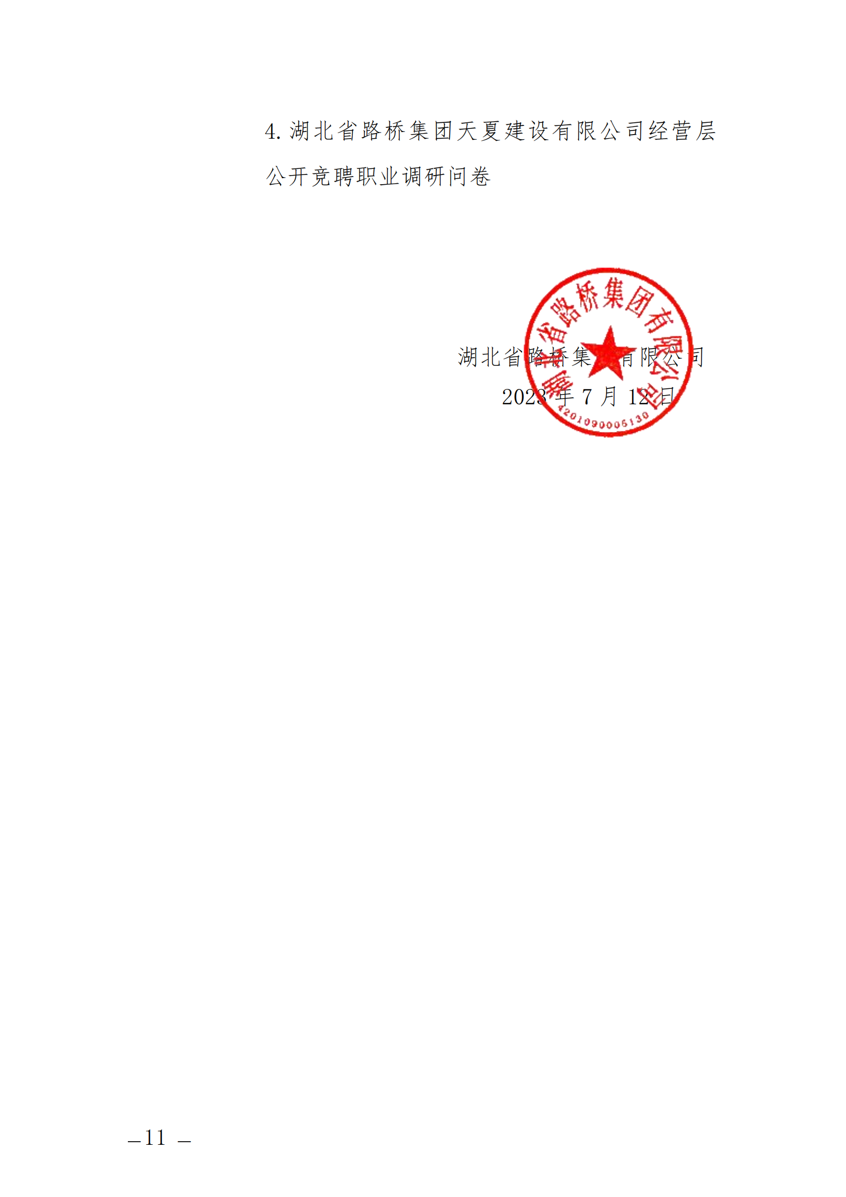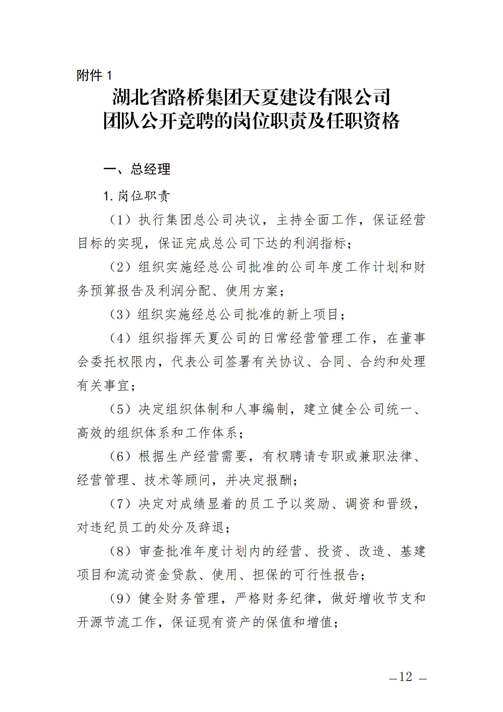 關(guān)于開展湖北省路橋集團(tuán)天夏建設(shè)有限公司經(jīng)營(yíng)層團(tuán)隊(duì)公開競(jìng)聘的通知