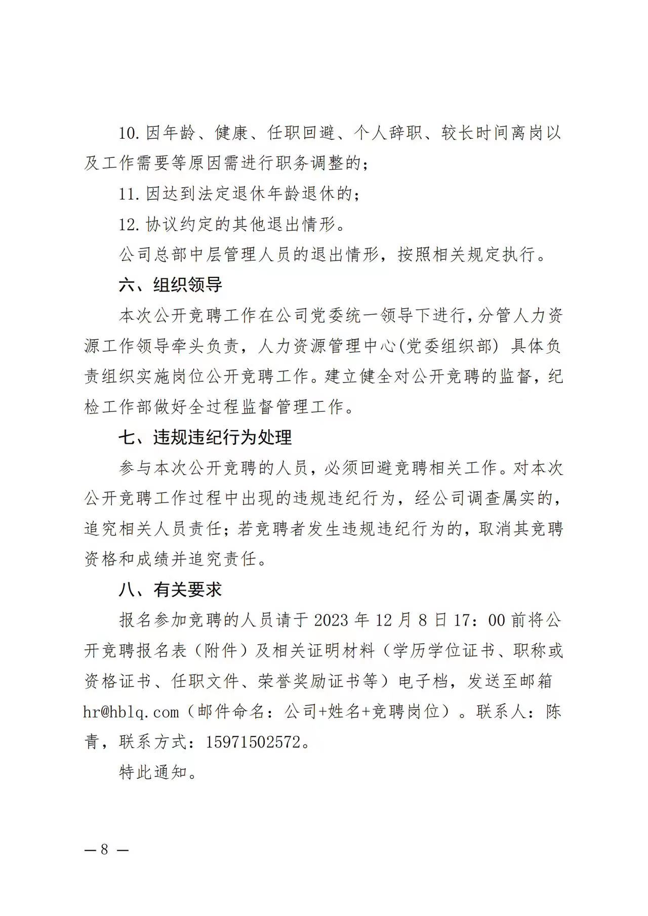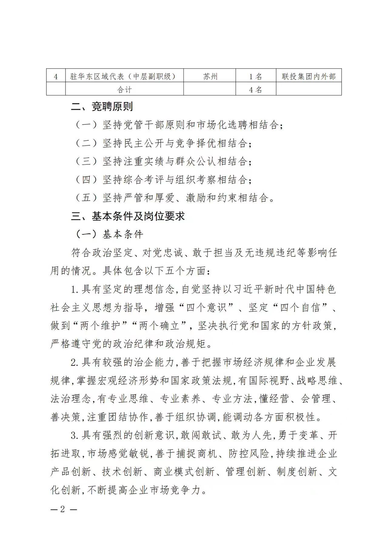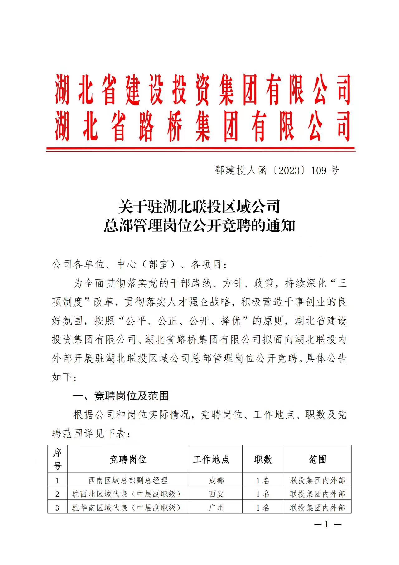 關于駐湖北聯(lián)投區(qū)域公司總部管理崗位公開競聘的通知