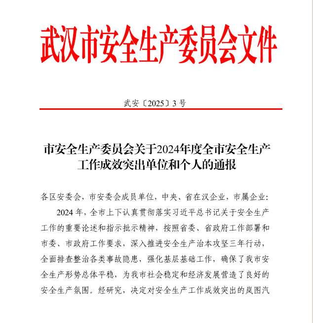 近日,武漢市安全生產(chǎn)委員會(huì)發(fā)布《關(guān)于2024年度全市安全生產(chǎn)工作成效突出單位和個(gè)人的通報(bào)》,華晟通公司榮獲武漢市2024年度安全生產(chǎn)工作“優(yōu)秀集體”稱號(hào),黨總支書記、董事長(zhǎng)凡孝均獲評(píng)武漢市2024年度安全生產(chǎn)工作“優(yōu)秀個(gè)人”榮譽(yù)。