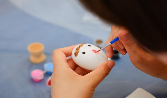 手工體驗(yàn)環(huán)節(jié),大家圍桌而坐,填充香料、綁扎絲帶、裝飾香囊,用畫筆和顏料裝飾自己最特別的那顆彩蛋……一筆一劃充滿喜悅、飽含祝福。