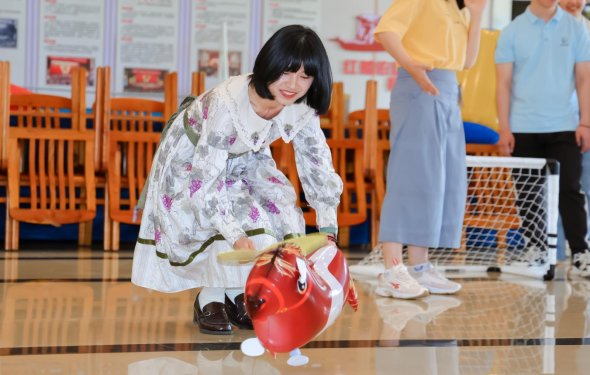趣味游戲環(huán)節(jié),大家積極踴躍參與,限時(shí)釣粽子、魔方比大小、“趕雞入籠”接力賽、“一錘定音”砸氣球……現(xiàn)場(chǎng)歡呼聲、吶喊聲,此起彼伏,高潮迭起。