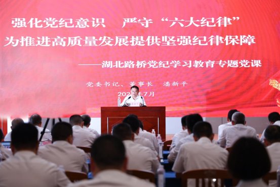 潘新平對受表彰的先進集體和個人表示祝賀,對黨的“新鮮血液”的加入表示歡迎。他結(jié)合自身理論學(xué)習(xí)感悟,作了題為《強化黨紀(jì)意識? 嚴(yán)守“六大紀(jì)律” 為推進高質(zhì)量發(fā)展提供堅強紀(jì)律保障》的黨紀(jì)學(xué)習(xí)教育專題黨課。