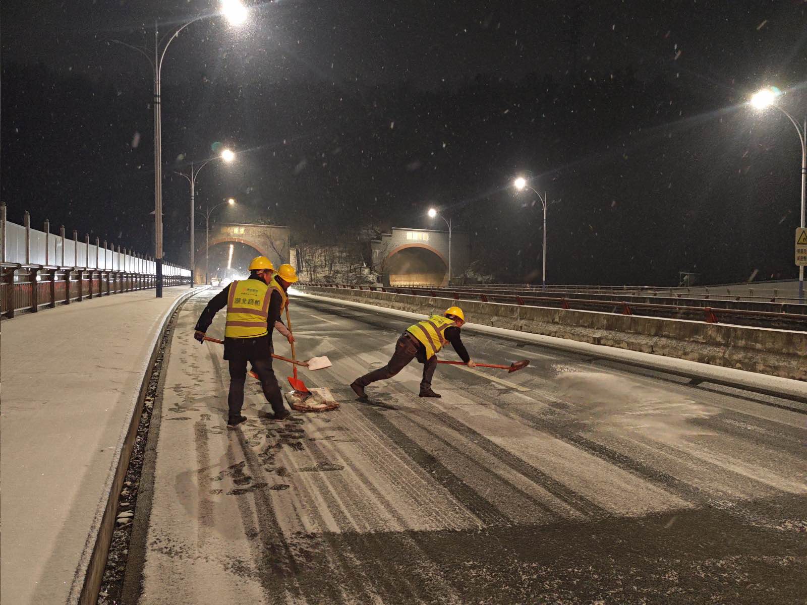 面對強降雪導(dǎo)致的交通公路路面結(jié)冰打滑,以及建筑工地施工通道、運輸要道積雪結(jié)冰的雙重隱患,五峰建養(yǎng)01包項目部迅速啟動冰雪應(yīng)急預(yù)案,組建專業(yè)搶險隊伍,提前儲備了足量環(huán)保型融雪鹽、鐵鍬等應(yīng)急物資,明確“先公路主干道、后工地關(guān)鍵區(qū)”作業(yè)邏輯,搶險隊伍兵分兩路展開作業(yè):公路組駕駛皮卡車沿責(zé)任路段勻速行駛,重點對橋梁、彎道、坡道等易結(jié)冰部位精準(zhǔn)撒布融雪鹽;工地組采用“機械+人工”的協(xié)同模式,由撒鹽車全面覆蓋主干道,作業(yè)人員則手持工具對施工便道、材料堆場、腳手架通道等機械作業(yè)死角進(jìn)行補撒,同時嚴(yán)格控制融雪鹽用量,避免設(shè)備受到腐蝕,全體搶險人員實行24小時輪班巡查制度,每2小時檢測一次路面防滑情況,累計撒布融雪鹽3噸,清理積雪結(jié)冰路面6公里,確保了周邊公路全線暢通和工地施工通道無結(jié)冰隱患。